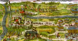 Der Livländische Krieg begann 1558 mit dem Einmarsch russischer Truppen in Livland. Als Anlass für den Überfall diente Iwan die Verweigerung der von seinem Großvater über das Stift Dorpat verhängten Tributzahlung durch den Orden.[2] Der geforderten Nachzahlung konnten die sich seit dem Zweiten Thorner Frieden von 1466 unter polnischer Oberhoheit befindlichen Ritter nicht mehr nachkommen. Narwa fiel am 11. Mai 1558; Neuhausen am 29. Juni; Dorpat am 18. Juli 1558. Der Norden der Konföderation wurde rasch besetzt. Mit der Eroberung Narwas gewann Russland vorübergehend (bis 1581) einen unmittelbaren Zugang zur Ostsee. Nachdem die russischen Truppen im Herbst bis vor Reval vorgedrungen waren, sich dann aber nach Narva und Dorpat zurückgezogen hatten, brachen sie im Januar 1559 ein drittes Mal in Livland ein, jetzt in die erzstiftischen Gebiete mit Stoßrichtung Riga. Den Augsburger Reichstag ersuchte der Komtur Georg Sieberg von Wischlingen im Auftrag des Hochmeisters Wolfgang Schutzbar im April 1559 um Hilfe.[3] Obwohl Livland Teil des Reiches war, kam es nicht zu einem „gewaltigen gegenzug“, da ein Ausschuss des Reichsfürstenrates zu dem Schluss kam, dass kurzfristig kein Heer aufgestellt werden könne.[4]