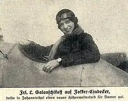 - ↑ a b c d Heili Reinart: Viljandlanna Ljubov Galantchikoff – üks esimesi naisi lennunduses lõpetas New Yorgi taksojuhina (abgerufen am 8. Februar 2020).