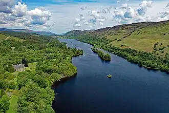 | Luftbild von Loch Oich mit der An t-Eilean Fada | ||
