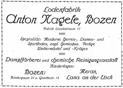 Inserat der Südtiroler Lodenfabrik Anton Nagele im Adressbuch Bozen-Gries 1922/23