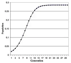 Die logistische Gleichung wurde ursprünglich 1837 von Pierre François Verhulst[1] als demographisches mathematisches Modell eingeführt. Die Gleichung ist ein Beispiel dafür, wie komplexes, chaotisches Verhalten aus einfachen nichtlinearen Gleichungen entstehen kann. Infolge einer richtungsweisenden Arbeit des theoretischen Biologen Robert May aus dem Jahr 1976[2] fand sie weite Verbreitung. Bereits 1825 stellte Benjamin Gompertz in einem verwandten Zusammenhang eine ähnliche Gleichung vor.[3]