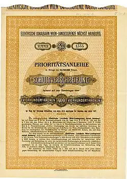 Mehrheitsgesellschafter der als Aktiengesellschaft konstituierten Privatbahn L.W.P. waren das Land Niederösterreich und das k.k. Eisenbahnministerium, der Landtag von Niederösterreich übernahm die Garantie für die Prioritätsanleihe über 10,7 Millionen Kronen.[1] Als Ablöse für die Vorkonzession des Ingenieurs Josef Tauber, der die Pressburger Bahn 1898 plante, waren zudem 43.000 Kronen zu entrichten.[2]