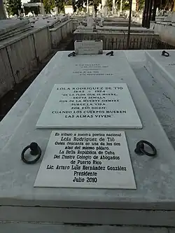 Lola Rodríguez de Tió (vollständiger Name: Dolores Rodríguez de Astudillo y Ponce de León, * 14. September 1843 in San Germán, Puerto Rico; † 10. November 1924 in Havanna, Kuba) war die erste puerto-ricanische Dichterin, die in ganz Lateinamerika erfolgreich war. Sie setzte sich für die Rechte der Frauen, die Abschaffung der Sklaverei und die Unabhängigkeit ihrer Heimat ein.