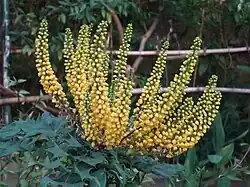 Mit der Japanischen Mahonie bildet die Lomariablättrige Mahonie die Hybride Mahonia × media C.D.Brickell.
