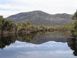 Am Fuß des Hanges liegt hinter einem 25 bis 30 Meter breiten und 4 bis 6 Meter hohen Streifen Gebüschs eine von Buttongras dominierte Ebene. Der Hang selbst wird von einem Mischwald dominiert, dessen oberste Ebene von bis zu 25 Meter hohen Eucalyptus nitida-Bäumen gebildet wird. Unter diesem befindet sich ein Regenwald, in dem Tasmanische Scheinulmen, Nothofagus cunninghamii und Phyllocladus aspleniifolius dominieren, gefolgt von einem aus Anopterus glandulosus, Anodopetalum biglandulosum und Cenarrhenes nitida dominierten Unterholz. Am Boden findet sich vor allem der Rippenfarn Blechnum wattsii. Inselartig finden sich Populationen von Dracophyllum milliganii.