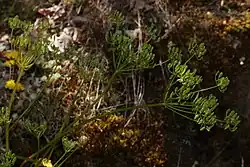 Lomatium triternatum(Pursh) Coult. & Rose: Es gibt zwei bis vier Varietäten, aber diese Verwandtschaftsgruppe wird kontrovers diskutiert:[2]