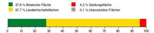 Es besteht zu 27,8 % aus Bestockter Fläche, zu 67,7 % aus Landwirtschaftsfläche, zu 4,3 % aus Siedlungsfläche und zu 0,1 % unproduktiven Flächen.