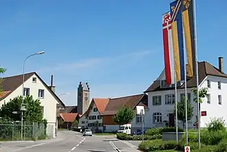 Lommis, Hauptstrasse, Blick in Richtung katholische Kirche