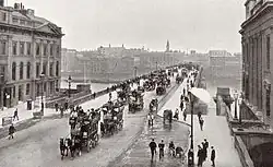 Schätzungen zufolge wurde die Brücke um 1896 von 8000 Fußgängern und 9000 Fahrzeugen je Stunde genutzt.[2] Daraufhin wurde die Brücke zwischen 1902 und 1904 von 16 auf 20 Meter verbreitert, um dem immer stärkeren Verkehrsaufkommen gerecht zu werden. Allerdings überstieg das Gewicht dadurch die Tragfestigkeit der Fundamente und man stellte im Nachhinein fest, dass sie alle acht Jahre um einen Zoll sank. 1924 war die Ostseite drei bis vier Zoll tiefer als die Westseite.