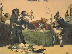 Die Londoner Konferenz von 1830 fand vor dem Hintergrund der Belgischen Revolution statt und war eine diplomatische Reaktion auf die politischen Umwälzungen in den Niederlanden.[1] Die Vorgeschichte der Konferenz reicht zurück bis zum Wiener Kongress von 1815, auf dem die europäischen Großmächte nach den Napoleonischen Kriegen die politische Ordnung des Kontinents neu strukturierten. In diesem Rahmen wurde die Vereinigung der nördlichen Niederlande mit den ehemaligen Österreichischen Niederlanden beschlossen, wodurch das Vereinigte Königreich der Niederlande unter König Wilhelm I. entstand.[2][3] Diese Maßnahme diente in erster Linie dem Ziel, einen starken Pufferstaat gegen Frankreich zu schaffen.[4]