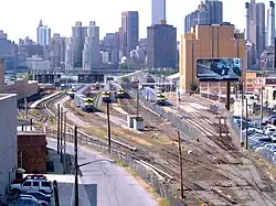Conrad Poppenhusens Flushing and North Side Railroad führte ab den 1860er Jahren in das Gebiet und wurde 1876 Teil der Long Island Rail Road (LIRR). Die Pennsylvania Railroad kaufte 1900 die Long Island Rail Road, eröffnete 1910 den Abstellbahnhof Sunnyside Yard und baute die erste für Güterverkehr geeignete Festlandanbindung über die 1917 eröffnete Hell Gate Bridge. Das um den Dutch Kills ansässige Gewerbe war über die private Degnon Terminal ans Eisenbahnnetz angebunden.[12][13][14] Die langgestreckten, breiten Bahnanlagen bildeten physische Barrieren, die die Durchlässigkeit des Stadtteils über Jahrzehnte hinweg einschränkten und die Entwicklung von zusammenhängenden Stadtquartieren behinderten.[15]