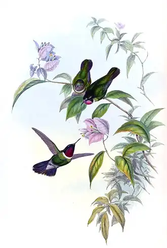 Longuemare-Sonnennymphe (Heliangelus clarisse), gemalt von John Gould | ||||||||||