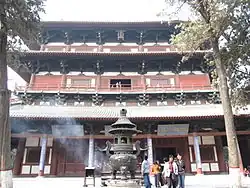 An dem gegenüberliegenden Ende der Achse ist die Haupthalle (Da bei ge), die auch als Foxiang Pavillon (Foxiang Ge) oder Tianning ge bezeichnet wird: eine 33 Meter hohe Holzkonstruktion, die eine Bronzestatue der Guan Yin beherbergt. Diese Bronze wurde im 4. Jahr der Kaibao-Regierungsperiode der Nördlichen Song-Dynastie (971) gegossen. Ihre Höhe beträgt über 20 Meter. Weil sie 42 Arme hat, wird sie auch „Guanyin mit tausend Händen und tausend Augen“ genannt (Qianshou Qianyin Guanyin). In der Halle führt eine Treppe um die Statue herum, was ihre Betrachtung von oben bis unten ermöglicht.