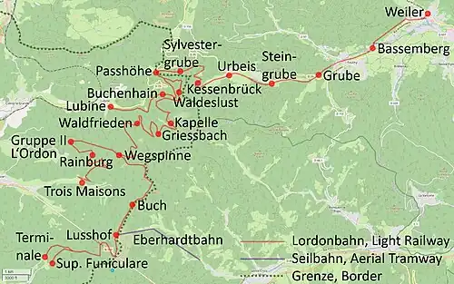 Die Lordonbahn war ein während des Ersten Weltkriegs von den deutschen Streitkräften verlegtes, 42 km langes Feldbahn-Netz von Weiler (Villé) im Elsaß zum 567 m höher gelegenen Chaume de Lusse in den Vogesen in Frankreich.[3] Es handelte sich um eine strategische Bahn.