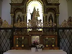 In der Mitte der Saalkirche steht über dem Altar die von einem Strahlenkranz umgebene, 140 Zentimeter hohe Madonnenfigur. Ihre reichverzierten Gewänder sollen von der Gräfin Johanna von Monfort selbst angefertigt worden sein. Ein eisernes Gitter mit zwei Türen trennt, ähnlich einer Ikonostase, den heiligsten Bezirk vom Gebetsraum. Auf dem Gitter sind die Wappen derer von Montfort und Waldburg-Wolfegg. Die Decke ist nach dem Vorbild des Heiligen Hauses in Nazareth rundgewölbt. In dem Raum herrscht ein mystisches Dunkel, denn nur von der Empore her dringen ein paar Lichtstrahlen in das Innere. Im Laufe von vier Jahrhunderten wurde die Kapelle immer wieder renoviert. Die letzte Erneuerung fand 2012 statt, dabei wurde über dem Dachwerk aus der Bauzeit ein neuer Dachstuhl errichtet. Außen ist die Kapelle von einem überdachten Umgang eingesäumt. Ein Dachreiter macht auf den sakralen Bau aufmerksam.