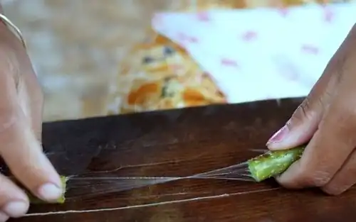 Zum Ende der Regenzeit, wenn der Wasserstand am höchsten ist, werden die Stängel der Lotosblüten und -blätter geerntet, da sie dann die größte Länge erreichen. Die Endstücke der zwei bis drei Meter messenden Stängel werden etwa eine Handbreit vom Ende angeschnitten, abgeknickt und dann abgezogen, sodass die höchstens fünf Mikrometer starken Fasern freiliegen.[2] In weiteren handbreiten Abschnitten wird Stück für Stück der ganze umschließende Stängel entfernt. Die Fasern von drei bis fünf Stängeln werden verzwirnt. Solange sie noch geschmeidig sind, werden sie gesponnen und währenddessen durch wiederholtes Wässern feucht gehalten. Vor dem Weben wird das Garn mit Reisstärke gestärkt und auch am Handwebstuhl immer wieder benetzt. Da es in trockenem Zustand bricht, erfolgt die Verarbeitung innerhalb von 24 Stunden nach der Ernte.[3] Eine Person spinnt am Tag zwischen 80 und 100 Gramm Faden, für einen Schal werden tausende Stängel und ein bis zwei Wochen Zeit benötigt.