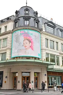 - dreigeschossiges Warenhaus mit darüberliegenden Mietwohnungen 1902 in der Rue de Buzenval, Ecke Rue d’Avron im 20. Arrondissement[10]
