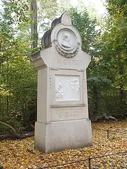 Wegen des Baus des Grassi-Museums mit Inanspruchnahme von Teilen des Alten Johannisfriedhofs wurde im Juli 1925 das Denkmal an seinen heutigen Standort im Rosental versetzt, wobei sein dreistufiger Granitsockel abhandenkam. Nach mehrfachem Ausbessern wurde es 2016 restauriert.[3]