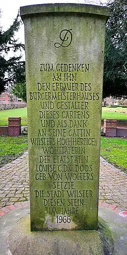Im Bürgermeistergarten der Stadt befindet sich ein Gedenkstein für Johann Hinrich und Louise Doos.[2]