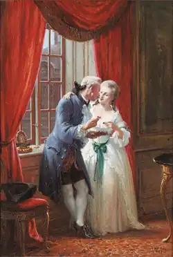 Louise interessierte sich für Musik, Theater und Tanz. 1747 lud sie die italienische Operntruppe des Impresario Pietro Mingotti nach Kopenhagen ein, wo sie in Schloss Charlottenborg für den Hof sowohl Oper als auch Ballett bis 1750 aufführte.[15][16] Zu den Mitgliedern der Truppe gehörte der Komponist Christoph Willibald Gluck, der sich von 1748 bis 1749 beim dänischen Hof aufhielt. 1749 komponierte er anlässlich der Geburt des Kronprinzen Christian die Oper La contesa dei Numi, die am 9. April 1749, anlässlich des ersten Kirchgangs der Königin Louise nach der Entbindung, auf Schloss Charlottenborg aufgeführt wurde; der „Streit der Götter“ dreht sich darum, welcher der Olympischen Götter am geeignetsten ist, den Kronprinzen zu erziehen.[17] 1748 wurde auch die französische Theatertruppe Troupe Dulondel unter der Leitung der Schauspielerin Jeanne Dulondel eingeladen, dramatische Theateraufführungen in Kopenhagen aufzuführen, wo sie bis 1753 verblieben und auch in Norwegen während des Besuchs des Königs dort im 1749 auftraten.