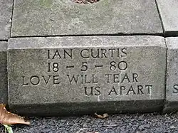 - ↑ Ian Curtis memorial stone stolen. 2. Juli 2008 (bbc.co.uk [abgerufen am 26. Januar 2025]).