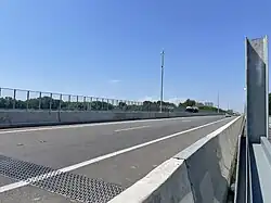 Die Brücke ist 35 m breit und umfasst zwei je 11,5 m breite Fahrbahnen mit zwei Fahrspuren und verbreiteten Standspuren, die im Bedarfsfall in durchgehende Fahrspuren umgewandelt werden können, einen 3 m breiten Mittelstreifen, zwei 1,5 m breite Streifen zwischen den Seitenleitplanken und den Schutzwänden sowie zwei 3 m breite Geh- und Radwege.[1]