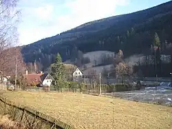 Nachbarorte sind Bílý Potok (Weißenseifen) und Železná (Buchbergsthal) im Norden, Vrbno pod Pradědem im Nordosten, Zadní Ves (Hinterdorf), Karlovice (Karlsthal) und Nové Karlovice (Neu-Karlsthal) im Osten, Pustá Rudná (Lauterseifen) und Andělská Hora (Engelsberg) im Südosten, Kyselka (Sauerbrunn), Suchá Rudná (Dürrseifen) und Podlesí (Wiedergrün) im Süden, Karlova Studánka (Karlsbrunn) und Hubertov (Hubertskirch) im Südwesten, Vidly (Gabel) im Westen sowie Bělá (Waldenburg) im Nordwesten.