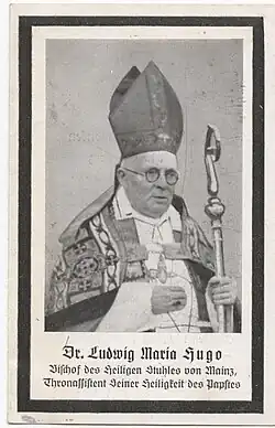 - ↑ Ludwig Lenhart: Dr. Ludwig Maria Hugo (1871–1935). Ein theologisch-religiös markanter, den Nationalsozialismus frühzeitig durchschauender Rheinpfälzer auf dem Mainzer Bischofsstuhl (1921–1935), in: AmrhKG 18 (1966), S. 119–199, hier 120.