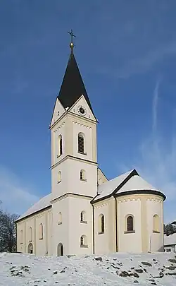 Die neuromanische Pfarrkirche Hl. Herz Jesu wurde 1893/94 nach Plänen von Johann Baptist Schott erbaut. Sie besitzt eine einheitlich neuromanische Ausstattung des Münchner Künstlers Franz Hofstötter (1871–1958). Ungewöhnlich ist vor allem die reiche Bemalung des Innenraums.
