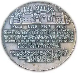Die Luftangriffe auf Koblenz im Zweiten Weltkrieg, die 1944 und 1945 von den United States Army Air Forces (USAAF) und der britischen Royal Air Force (RAF) durchgeführt wurden, zerstörten die Stadt Koblenz zu 87 %. Speziell das Flächenbombardement ziviler Ziele (Innenstadt, Wohngebiete und andere) durch die RAF erfolgte aufgrund der vom britischen Luftfahrtministerium (Air Ministry) am 14. Februar 1942 erteilten „Area Bombing Directive“.[1]