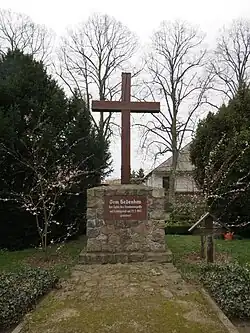 „Die Begräbnisstätte für die (örtlichen) Opfer des Bombenangriffs hat seit 2002 wieder ein komplettes Denkmal. Ein etwa drei Meter hohes Kreuz auf einem Feldsteinsockel ist Mahnmal und Wache zugleich“. Die Inschrift der eingelassenen Gedenktafel lautet: Dem Gedenken der Opfer des Bombenangriffs auf Ludwigslust am 22.2.1945 gewidmet. Die Stifterin der Tafel war Frau Gisela Simonsen. In der Nachbarschaft zum Mahnmal sind nur noch wenige individuelle Grabzeichen erhalten.
