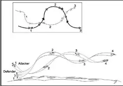 - Scissors: „Scherenschneider“, horizontale Richtungsänderungen mit dem Zweck, den Angreifer zum "Überschießen" zu bringen und dadurch den Angriffswinkel zu erhöhen.