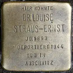 - ↑ a b c Dr. Louise Straus-Ernst (1893–1944(?)). In: Kirsten-Serup Bilfeldt: Stolpersteine – Vergessene Namen, verwehte Spuren. Wegweiser zu Kölner Schicksalen in der NS-Zeit. Kiepenheuer & Witsch, Köln 2004, 2. Auflage, ISBN 3-462-03535-5, S. 131–141.
