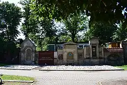Ein ebenfalls von Vollmer und Jassoy geplantes Eingangsportal, das architektonisch mit der Kapelle korrespondiert hätte, kam nicht zur Ausführung. Stattdessen wurde ein gusseisernes Portal errichtet.