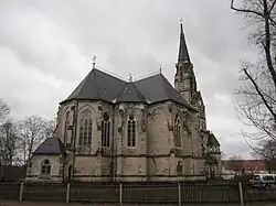 Eine verkleinerte Kopie der Lukaskirche von Planitz entstand 1881 bis 1884 in der Christuskirche von Bodenbach in Böhmen.