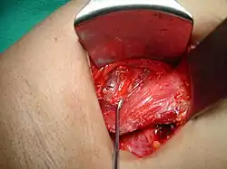 - ↑ a b c A. Hirner und K. Weise: Chirurgie: Schnitt für Schnitt. Georg Thieme Verlag, 2004, ISBN 3-131-30841-9, S. 407. eingeschränkte Vorschau in der Google-Buchsuche