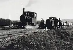 - ↑ Beschriftung der Wagen bei der Eröffnung der Feldbahn am 19. April 1943.