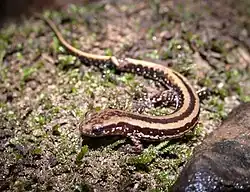 - Art Eurycea guttolineata (Holbrook, 1838) – Dreistreifensalamander