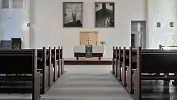 Blick in den Saal der Kirche aus dem zweiten Stock -