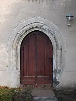 Unmittelbar an der Kirche befindet sich ein Denkmal zu Ehren der im Ersten Weltkrieg gefallenen Dorfbewohner des Ortes. Dieses Denkmal besteht aus einer grob behauenen Stele mit spitzem Abschluss aus Beuchaer Granitporphyr. An ihrer Front ist eine glatt ausgemeißelte Namenstafel zu finden. Darunter ist die Inschrift „Für Treue und Pflicht Du Volk, vergiß es nicht. Die dankbare Gemeinde“ zu sehen.[2][8]