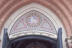 Zum 450. Geburtstag Luthers (1933) stiftete die Leipziger Kunstgewerbeschule eine rechteckige Reliefplatte aus Kunststein, die an der Stirnwand des Schiffes angebracht ist. Sie ist 1,90 m hoch und 90 cm breit. Die Platte trägt eine Inschrift.