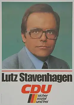Lutz-Georg Stavenhagen (* 6. Mai 1940 in Jena; † 31. Mai 1992 in Pforzheim)[1] war ein deutscher Politiker (CDU), von 1985 bis 1987 Staatsminister im Auswärtigen Amt und von 1987 bis 1991 Staatsminister im Bundeskanzleramt.