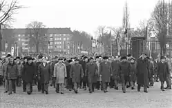 Am 31. Mai 1919 fand ein Schleusenarbeiter Rosa Luxemburgs Leichnam an einer Schleuse im Landwehrkanal in der Nähe der Unteren Freiarchenbrücke.[60] Um Massenunruhen zu vermeiden, verhängte Noske eine Nachrichtensperre, ließ den Leichnam konfiszieren und in das Militärlager Zossen bringen. Die Rechtsmediziner Fritz Straßmann und Paul Fraenckel obduzierten ihn im Standortlazarett von Wünsdorf und stellten einen Pistolennahschuss als Todesursache fest. Am 5. Juni identifizierte Mathilde Jacob die Tote. Am 13. Juni wurde Rosa Luxemburgs Leichnam nach Berlin überführt und neben Karl Liebknechts Grab beigesetzt. Zehntausende begleiteten die Bestattung.[62] Paul Levi hielt die Totenrede.[63] Auch in Wien gab es aus diesem Anlass eine Großdemonstration und Streiks.[64] 1935 ebneten die Nationalsozialisten ihr Grab ein und entnahmen ihre Gebeine. Als die sterblichen Überreste Luxemburgs 1950 im Auftrag von Wilhelm Pieck umgebettet werden sollten, erbrachte die Grabung keinen Erfolg.[65]