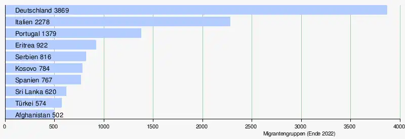 - ↑ Ausländische ständige Wohnbevölkerung nach Nationalität Ende 2022 in den Stadtkreisen