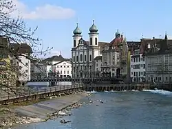 1798, neun Jahre nach Beginn der Französischen Revolution, marschierte die französische Armee in der Schweiz ein. Die Alte Eidgenossenschaft zerfiel, und die Herrschaft der Patrizier wurde in eine Demokratie umgeformt, es entstand die Helvetische Republik, deren Hauptstadt für kurze Zeit Luzern war. Somit waren erstmals nichtkatholische Gottesdienste erlaubt. Das erste evangelische Gotteshaus war die 1860 erbaute Matthäuskirche an der Hertensteinstrasse, deren Grundstück von der reformierten Familie Hauser des Hotels Schweizerhof zur Verfügung gestellt wurde.[24]