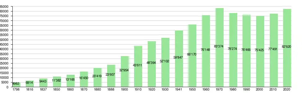 - ↑ Bevölkerung nach Nationalität und Geschlecht seit 1860