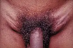 Lymphogranuloma venereum (auch Venerisches Granulom, venerische Lymphknotenentzündung, Lymphopathia venerea, Lymphogranuloma inguinale, Lymphogranulomatosis inguinalis und Nicolas-Durand-Favre-Krankheit, Abkürzung LGV) ist eine in der westlichen Welt seltene, in den Tropen häufiger vorkommende sexuell übertragbare Erkrankung. Die Krankheit zählt zu den so genannten klassischen Geschlechtskrankheiten.[1] Die Erreger, erstmals als Chlamydienart entdeckt von Yoneji Miyagawa (1885–1959) und zunächst Miyagawanella lymphogranulomatosis und später Calymmatobacterium granulomatis[2] genannt, sind die Serotypen L1-L3 von Chlamydia trachomatis.