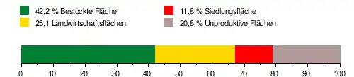Es besteht zu 42,2 % aus bestockter Fläche, zu 25,1 % aus Landwirtschaftsfläche, zu 11,8 % aus Siedlungsflächen und zu 20,8 % aus unproduktiven Flächen.[3]