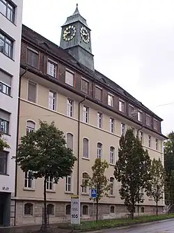 Der Altbau ist ein elfachsiges Gebäude mit vier Geschossen. Es ist zurückhaltend gegliedert. Der zentrale Eingang wurde später an die Seite und in den Neubau verlegt. Die rückseitige Erweiterung wurde in den Hang des Tals hineingebaut. Durch diese Baumassnahme entstand auch der Lichthof. Das vierte Geschoss hat einen Fusswalm und ist mit Schindeln verkleidet. Das Walmdach zeigt strassenseitig fünf Fledermausgauben und trägt den mit Kupferblech verkleideten Dachreiter. Er ist mit einer Turmuhr ausgestattet.