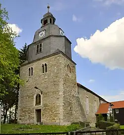 - Die evangelische Dorfkirche St. Martini steht an der Stelle einer Vorgängerkirche, von der nur der Turm von 1698 erhalten ist. Das Kirchenschiff stammt aus dem Jahr 1703. Das heutige Aussehen ist geprägt von vielen Umbauten der Vergangenheit. Die Herren von Mülverstedt fanden bis zum Jahre 1775 in der Kirche ihre Ewige Ruhe, sie wurden in ausgemauerten Grabstätten im Fußboden beigesetzt, die mit „Leichensteinen“ (Grabplatten) verschlossen wurden. Die Kirche erhielt 1949 einen neuen Fußboden, die Grabplatten wurden damals an der Kirchenwand aufgestellt.